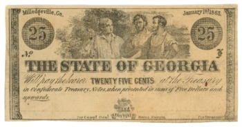 1863 State of Georgia Milledgeville GA 25 Cents (L4581)