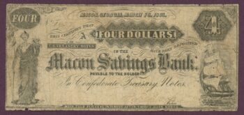 1863 Macon Savings Bank, Macon, Georgia $4 Obsolete Note No.1927 M104 (60385)