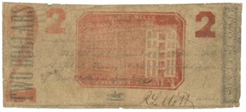 1861 Palace Mills Flourmeal & Bread Stuffs Georgia GA $2 No.1388 (L0028)