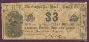 1861 Central Railroad & Banking Co. of Georgia, Savannah, GA $3 Note (60187)