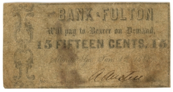1862 Bank of Fulton Georgia GA 15c (L2189)