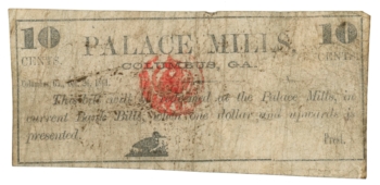 1861 Palace Mills, Columbus, Georgia 10c Obsolete Note UNL (62039)