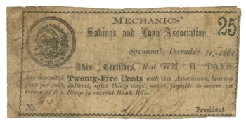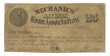 1861 Mechanics Savings and Loan Assoc. Savannah GA 25 Cents (L4630)