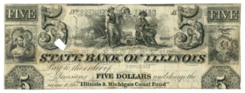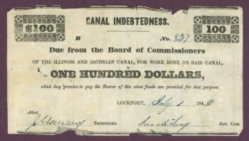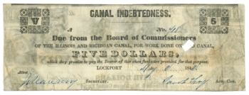 1842 Illinois & Michigan Canal Lockport IL $5 Note – Canal Indebtedness (L6083)