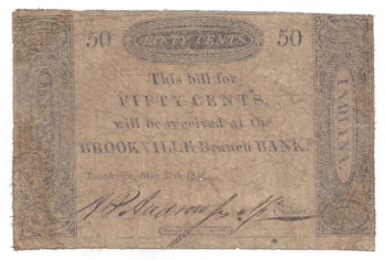 1818 Brookville Branch Bank, Brookville IN 50c Note W-86-8 (D58563)