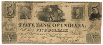 1842 State Bank of Indiana, Indianapolis, IN $5 Obsolete Note No.451 (59631)