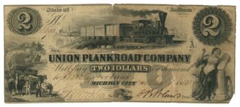 1852 Union Plank Road Company, Michigan City, Indiana $2 Obsolete Note (L1882)