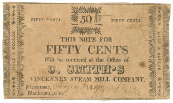 1843 C. Smith’s Vincennes Steam Mill Co., Vincennes, Indiana 50c Note (59689)