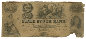 1852 State Stock Bank Logansport Indiana IN $2 Obsolete Note (64928)