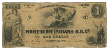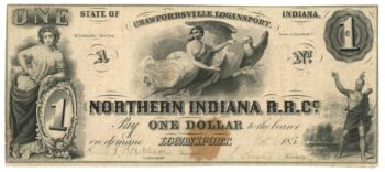 1856 Crawfordsville Logansport & Northern Indiana RR Co $1 Obsolete Note (65758)