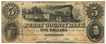 1854 Perry County Bank, Cannelton, Indiana $5 Obsolete Note No.5591 R-6 (59635)
