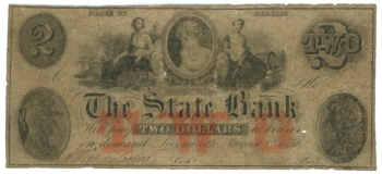 1856 State Bank, Leavenworth, Indiana $2 Obsolete Note No.87 R-7 (59740)