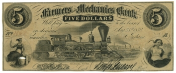1858 Farmers & Mechanics Bank, Cannelton, Indiana $5 Obsolete Note (62729)