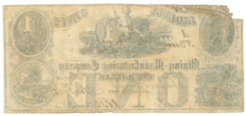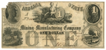 1855 Indiana State Mining & Manufacturing Co. Michigan City IN $1 Note (63983)