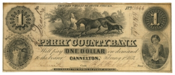 1854 Perry County Bank, Cannelton, Indiana $1 Obsolete Note W100-1 (60217)