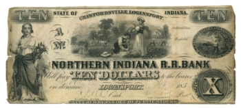 1859 Crawfordsville Logansport & Northern Indiana R.R. Bank $10 Obsolete (64920)