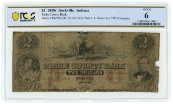 185X Parke County Bank Rockville Indiana IN $2 Obsolete PCGS 8 IN590-G8a RARE