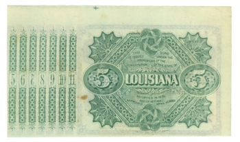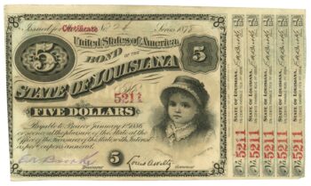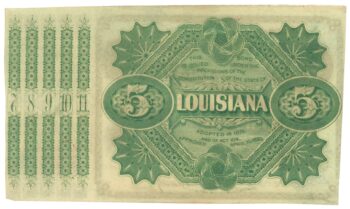 1870s State of Louisiana $5 Baby Bond No.96399 Green Serial Numbers (65477OZ)