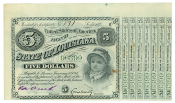 1878 Bond of the State of Louisiana, LA $5 Bond Certificate No.5222 (60020)