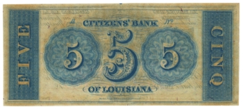 18XX Citizens Bank of Louisiana New Orleans LA $5 Obsolete – Remainder (65479)