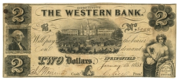 1855 Western Bank Springfield MA $2 Obsolete Note MA1195-S5 Spurious (66029)