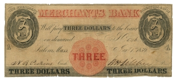 1859 Merchants Bank Salem MA $3 Obsolete Note MA1120-S15 Spurious (66028)