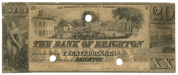 1851 Bank of Brighton, Massachusetts $20 Obsolete Note No.4492 (62712)