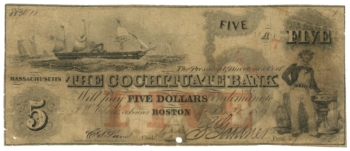 1856 Cochituate Bank Boston MA $5 (L3087)