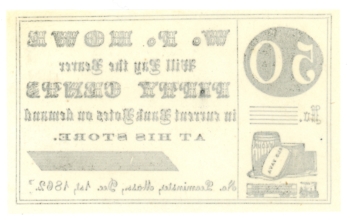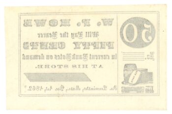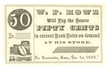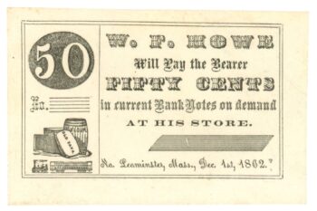 1862 W.F. Howe, North Leominster, Massachusetts 50c Private Scrip (59282)