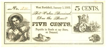 1862 West Northfield, Massachusetts 5c Obsolete Scrip No.250 UNL (59961)