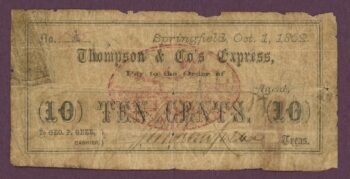 1862 Thompson & Co’s Express, Springfield, Massachusetts 10c Note RARE (60977)