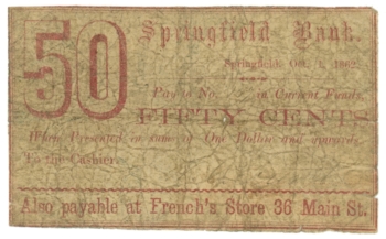 1862 Springfield Bank Massachusetts MA 50c No.157 (L1922)
