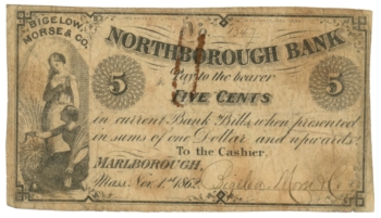 1862 Northborough Bank, Marlborough, Massachusetts 5c Obsolete Note (62711)