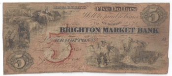 1861 Brighton Bank Brighton MA Five Dollar ALTERED IND. Note No. 1971 – D04631