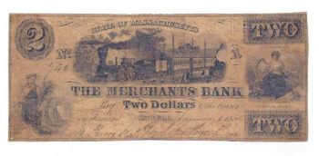 1859 The Merchants Bank, Lowell, Ma – Two Dollar Obsolete Note No.746