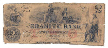 1857 The Granite Bank, Boston, Ma – Two Dollar Obsolete Note No.1022