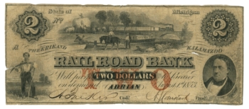 1853 Erie & Kalamazoo Rail Road Bank Adrian Michigan MI $2 Obsolete Note (64854)