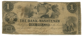 1854 Bank of Washtenaw, Ann Arbor, Michigan $1 Obsolete Note (63581)