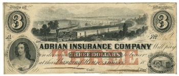 18XX Adrian Insurance Company Adrian Michigan MI $3 Obsolete Note (64600)
