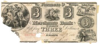 1838 Farmers & Merchants Bank, Centerville, MI $3 Note No.263 (59298)