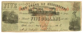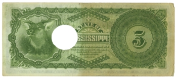 1862 State of Mississippi $5 Obsolete Note No.19551 CR31 (59331)