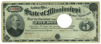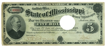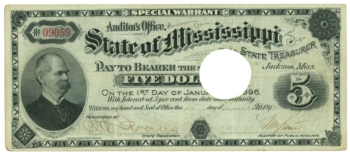 1894 State of Mississippi Jackson MS $5 Special Warrant CR-64 (64368)