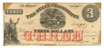 1862 State of Mississippi, Jackson, MS $3 Note No.31695 CR19 (D59318)