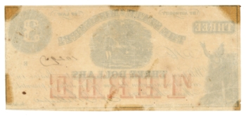 1864 State of Mississippi Macon MS $3 Obsolete – Civil War Era (64992)