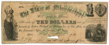 1862 State of Mississippi Treasury $10 MS (L6424)