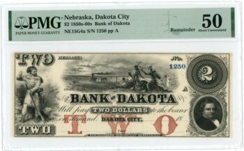 1850s-60s Bank of Dakota Dakota City Nebraska $2 PMG AU 50 (L1029)