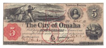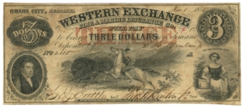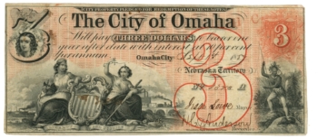 1857 City of Omaha, Omaha City, Nebraska Territory $3 Obsolete Note (63537)