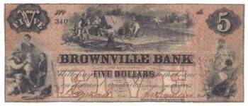 1857 Brownville Bank, Omaha City NE $5 Note No.340 (57998)