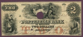 1856 Fontenelle Bank of Bellevue, Nebraska $2 Obsolete Note No.628 5-64A (60537)