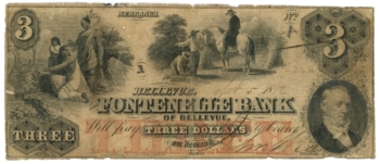1852 Fontenelle Bank of Bellevue, Nebraska $3 Obsolete Note (63355)